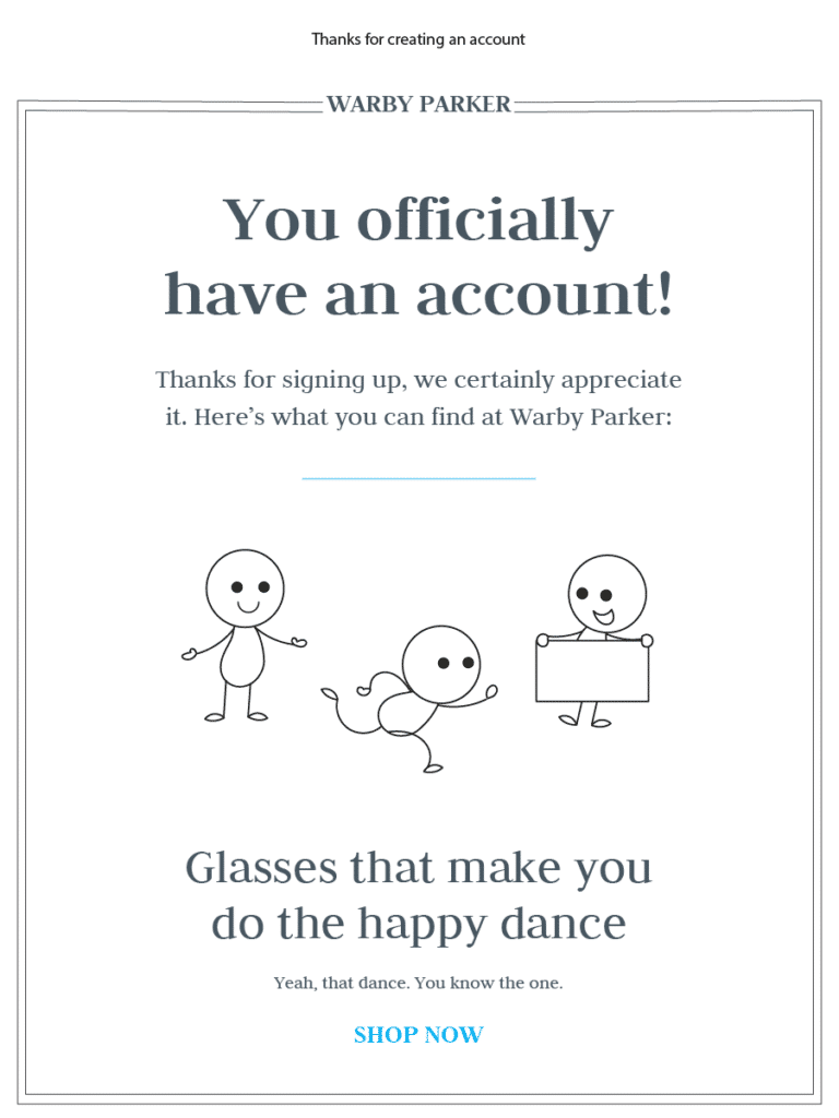 Warby Parker: Warby Parker’s purchase confirmation emails include a summary of the glasses or sunglasses purchased, the shipping address, and the estimated delivery date. They also include a reminder of Warby Parker’s return policy, a call to action to track the shipment, and a link to the customer’s account for order details.