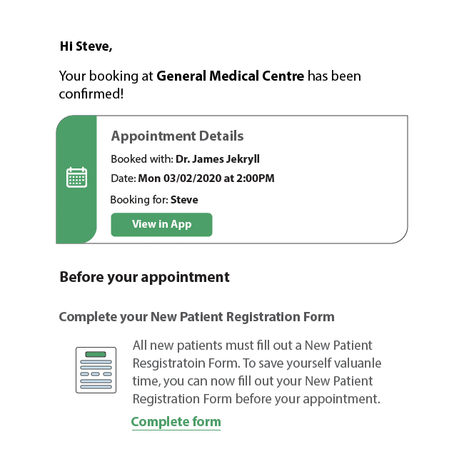 - Appointment confirmation email