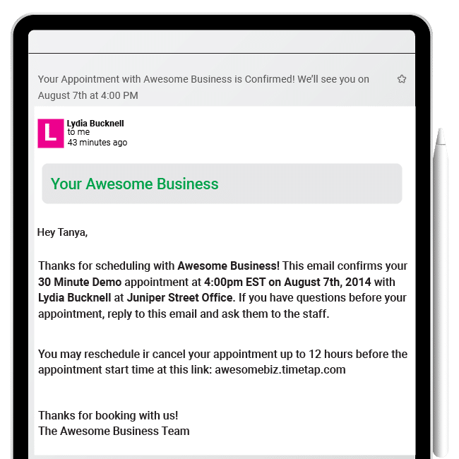 Here are some real-world examples of appointment confirmation emails: