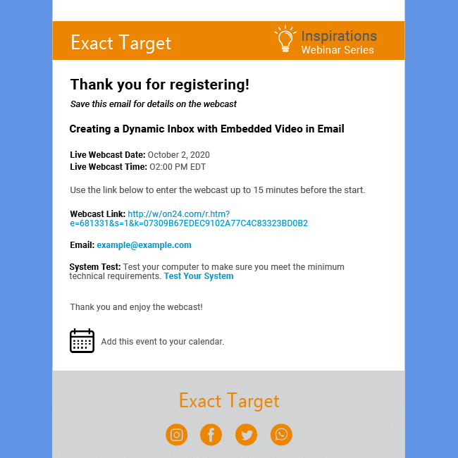 Here are some real-world examples of registration confirmation emails: